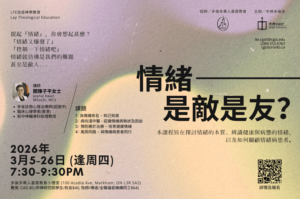 “To collaborate with the global Chinese churches, offering context-relevant theological education and carrying out research, so that the churches may fulfill the Great Commission in their locality.”